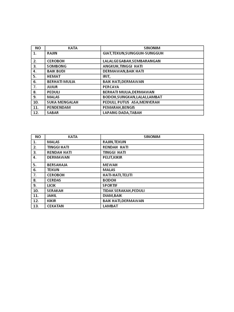 Related : Sinonim Dan Antonim Malas Tinggi Hati Rendah Hati - Istilah sinonim berasal dari bahasa..